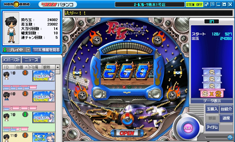 ハンゲームで最近、トランプゲームの大富豪ばかりやっていたので、今日はパチンコをやってみました。玉がよくチューリップに入る台を見つけたので、さっそく玉を出しまくってみたら、100回転ぐらいしてようやく大当たり・・・確率変動がきたのでよかったーー。って思って放置して玉をがんがん出しまくってました。4回確率変動がきて、5回目は当たりになってしまったのですが、その時点で5箱くらいでした。 当たりの後は、100回転分の時短があるので、そこが終わるまでは様子を見て当たってくれれば続けるし、だめなら終了かなーー。 PR